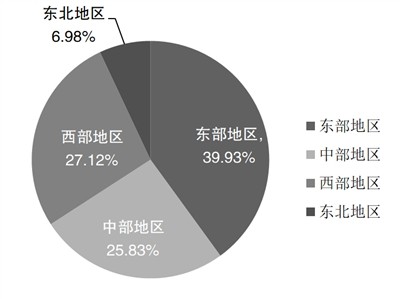 我们首先对区域划分作一个说明。按照国家统计局的常用划分方法,东部地区包括北京、天津、河北、上海、江苏、浙江、福建、山东、广东和海南10省(市),中部地区包括山西、安徽、江西、河南、湖北和湖南6省,西部地区包括内蒙古、广西、重庆、四川、贵州、云南、西藏、陕西、甘肃、青海、宁夏和新疆12省(区、市),东北地区包括辽宁、吉林和黑龙江。