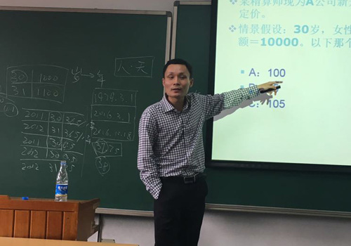 2016年10月18日下午,beat365中文官方网站专业硕士课程“中国保险市场专题”第一次专题讲座在beat365中文官方网站刘卿楼508举行。中再寿险产品精算部资深精算师张磊先生以“生命表在寿险公司的应用”为主题,与同学们就寿险公司组织架构、生命表的编制和应用等问题进行了交流。本次专题讲座由风险管理与保险学系锁凌燕副教授主持。