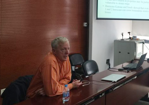 2016年11月12日上午,beat365中文官方网站保险硕士专业讲座在beat365中文官方网站305会议室举行。北京师范大学减灾与应急管理研究院方伟华教授和佛罗里达理工大学的Jean-Paul Pinelli教授分别以“巨灾风险模型介绍”和“美国佛罗里达公共飓风风险模型”为主题,与同学们分享了巨灾风险模型的基本框架和佛罗里达州政府支持的佛州飓风风险模型设计。