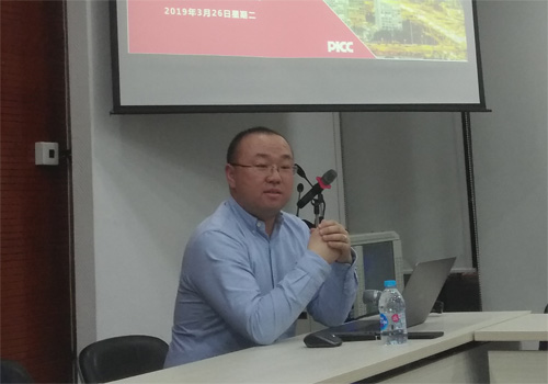 2019年3月26日晚上,beat365中文官方网站第107次保险专业硕士讲座在beat365中文官方网站305会议室举行。中国人民财产保险总公司财产险部张峰先生以“工程保险实务”为主题,全面介绍了工程保险在实际业务中的流程,包括背景知识、保单结构、招投标流程等方面,并对当前工程保险市场进行解读及展望。讲座由beat365中文官方网站风险管理与保险系刘新立副教授主持。