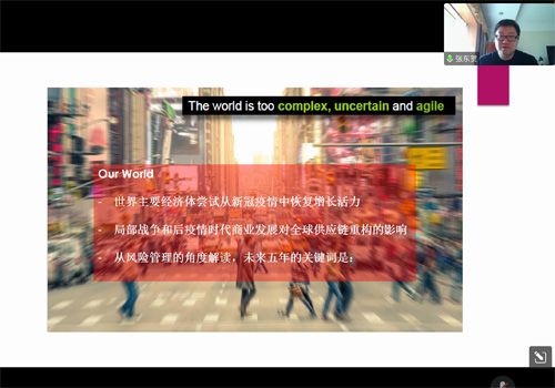 张先生首先强调风险管理应当有其适用的环境,需要时代的代入感。当前世界主要经济体经过疫情的洗礼,正处于恢复经济生活、社会生活、人文生活的阶段,因此,目前的风险管理实践主要聚焦于“后疫情时代”的商业发展。未来五年企业进行决策时所面临的复杂程度、不确定性和变化速度都是前所未有的。