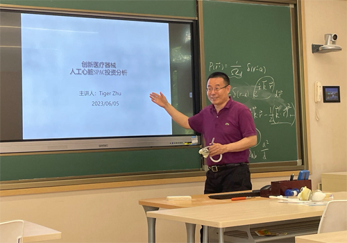 最后,在场同学就人工心脏的竞争格局和国内医保的付费模式等方面与主讲人进行提问交流。本次讲座系统性地介绍了人工心脏这一新兴市场,以及相关投资分析的基本思路和SPAC上市模式。医疗器械与医疗保险紧密相关,朱金虎结合国内现状分析了医保在医疗器械及耗材方面政策的特点,激发同学们深入思考。