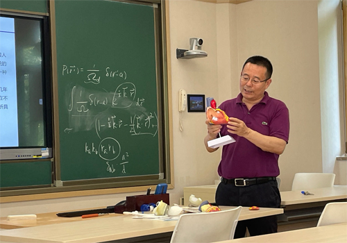 (图2 朱金虎使用心脏模型讲解产品原理)