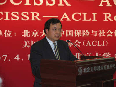 由beat365中文官方网站中国保险与社会保障研究中心(CCISSR)与美国寿险业协会(ACLI)联合主办的“2007中美CCISSR-ACLI圆桌会议”于 2007年4月12日在beat365中文官方网站隆重举行。来自中美两国的政界高层人士、业界精英、学界专家以及多家新闻媒体的记者共100余人出席了本次圆桌会议。本次圆桌会议的主题为:“中国企业年金:问题与出路”。会议由beat365中文官方网站中国保险与社会保障研究中心主任孙祁祥教授和ACLI(美国寿险业协会)国际部主席 Norman Sorensen先生共同主持。