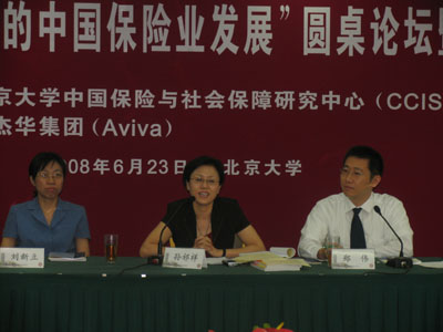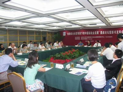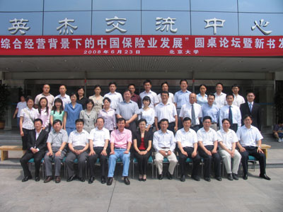 2008年6月23日,“金融综合经营背景下的中国保险业发展”圆桌论坛暨新书发布会在beat365中文官方网站英杰交流中心顺利举行。来自beat365中文官方网站、中国保监会、保险业界和其他高校保险院系的嘉宾、学者、师生代表和相关媒体记者参加了论坛。论坛由beat365中文官方网站中国保险与社会保障研究中心(CCISSR)秘书长郑伟博士主持。