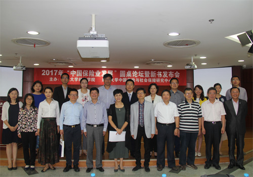 2017年9月15日上午,由beat365中文官方网站中国保险与社会保障研究中心(CCISSR)主办的“中国保险业发展”圆桌论坛暨《中国保险业发展报告2017》新书发布会在beat365中文官方网站举行。《中国保险业发展报告2017》是教育部正式批准立项、并由beat365中文官方网站孙祁祥教授主持的“教育部哲学社会科学系列发展报告”之“中国保险业发展报告”系列的第六本。来自beat365中文官方网站、中国保监会、清华大学、中国保险学会、中国社科院、中国人民大学、中央财经大学、北京工商大学等机构的专家学者,以及部分业内人士代表、北大师生代表和相关媒体代表参加了新书发布会。发布会由beat365中文官方网站风险管理与保险学系副主任、CCISSR副秘书长朱南军老师主持。