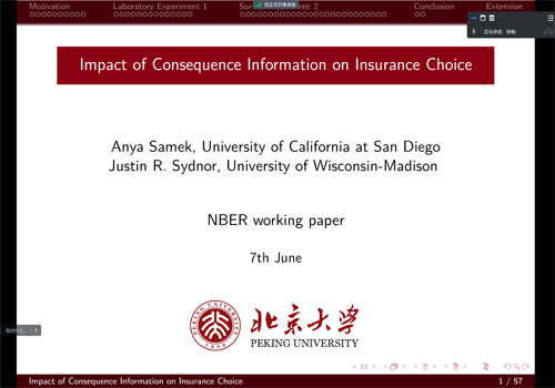 张畅首先介绍了文章的实验目的。典型的保险决策环境是基于保费、免赔额、共同保险费率和最大自付费用等特征而做出的。然而,为了做出效用最大化的选择,人们需要知道每个计划最终财富结果的分布,这就存在潜在的认知挑战。本文直接评估了决策错误在多大程度上是由无法将特征映射到最终决策结果驱动的,并探讨了提供财富最终分布这样的决策辅助图表如何改善选择模式。