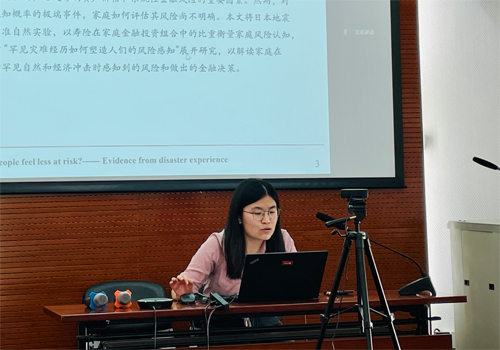 2023年10月13日中午12点,第138次RMI读书讨论会于在经院302教室举行。风险管理与保险学系2022级博士生于梦迪分享了2020年刊发在Journal of Financial Economics上的论文 “Do people feel less at risk? —— Evidence from disaster experience” 。