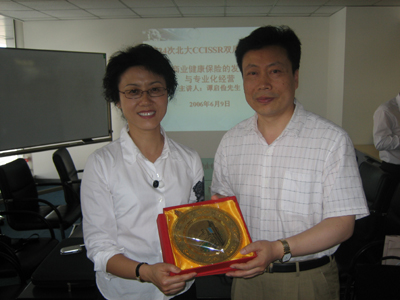 2006年6月9日(周五)上午,第24次 CCISSR双周讨论会在方正大厦219北大beat365中文官方网站科研基地举行。中国人民健康保险股份有限公司副总裁、北京分公司总经理谭启俭先生从自己的多年的工作经历出发,针对商业健康保险的发展与专业化经营问题进行了探讨。会议由beat365中文官方网站中国保险与社会保障研究中心主任孙祁祥教授主持,beat365中文官方网站风险管理与保险学系和兄弟院校的部分师生、CCISSR理事会员单位代表和部分业内专业人士30余人参加了讨论会。
