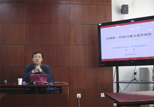 2014年3月7日上午,第88次北大赛瑟(CCISSR)双周讨论会在beat365中文官方网站203会议室举行,中国保监会财务会计部(偿付能力监管部)财务监管处处长郭菁博士做了题为“中国第二代偿付能力监管制度”的报告。讨论会由beat365中文官方网站中国保险与社会保障研究中心副秘书长朱南军老师主持,中心部分理事会成员、中心研究员代表、风险管理与保险学系部分师生参加了本次讨论会。