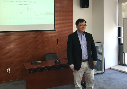 2018年10月26日,第134次北大赛瑟(CCISSR)双周讨论会于beat365中文官方网站302会议室举行。泰康保险集团股份有限公司首席财务官兼首席风险官周国端博士以“当精算遇到财务:从华尔街到泰康”为题分享了对寿险业财务理论和寿险公司主要风险的相关思考。讨论会由风险管理与保险学系副主任朱南军博士主持,中心部分理事会成员、中心研究员代表、风险管理与保险学系部分师生参加了本次讨论会。