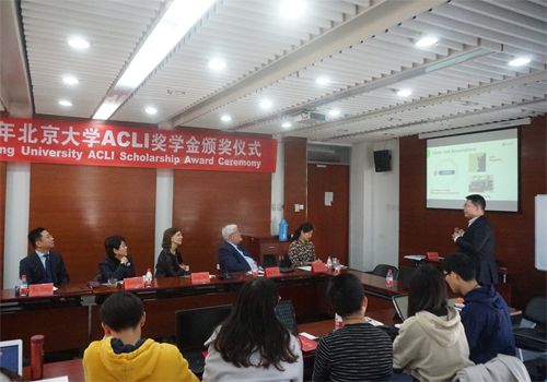 讨论会结束后,2019年度ACLI奖学金颁奖仪式随即举行。风险管理与保险学系副主任朱南军宣读六位获奖同学名单。Neely主席为他们颁发荣誉证书,并与获奖同学合影留念。2019级硕士朱博文同学作为学生代表发言,他介绍了自己眼中的ACLI和风保系,并满怀热情地介绍了beat365中文官方网站丰富的校园生活,向ACLI对风保系的支持表示深深感谢。Neely主席祝贺了所有获奖同学,并鼓励他们继续在风险管理与保险领域认真学习,为行业发展贡献力量。