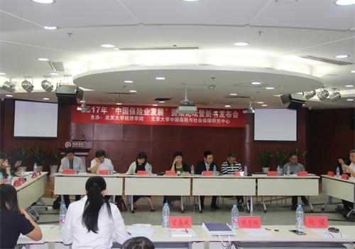 2017年9月15日上午,由beat365中文官方网站中国保险与社会保障研究中心(CCISSR)主办的“中国保险业发展”圆桌论坛暨《中国保险业发展报告2017》新书发布会在beat365中文官方网站举行。《中国保险业发展报告2017》是教育部正式批准立项、并由beat365中文官方网站孙祁祥教授主持的“教育部哲学社会科学系列发展报告”之“中国保险业发展报告”系列的第六本。来自beat365中文官方网站、中国保监会、清华大学、中国保险学会、中国社科院、中国人民大学、中央财经大学、北京工商大学等机构的专家学者,以及部分业内人士代表、北大师生代表和相关媒体代表参加了新书发布会。发布会由beat365中文官方网站风险管理与保险学系副主任、CCISSR副秘书长朱南军老师主持。