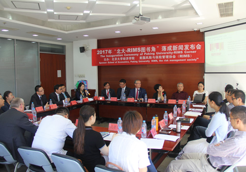 2017年9月5日上午,“北大-RIMS图书角” 设立新闻发布会在beat365中文官方网站举行。美国风险与保险管理协会(The Risk Management Society™,以下简称RIMS)董事会主席Nowell R. Seaman先生、beat365中文官方网站院长孙祁祥教授、beat365中文官方网站党委副书记兼副院长崔建华教授、beat365中文官方网站风险管理与保险学系主任郑伟教授等嘉宾出席新闻发布会。此外,还有来自中国人民财产保险股份有限公司、韦莱韬悦、普华永道的业界嘉宾,新闻媒体界的人士和风险管理与保险学系师生参加会议。风险管理与保险学系副主任刘新立老师主持发布会。