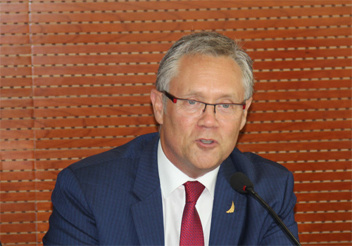 接着,RIMS董事会主席Seaman先生发表致辞和主题演讲。Seaman先生深情回忆了2016年3月和beat365中文官方网站师生初次会见的情形,对beat365中文官方网站在RIMS全球发展方面提供的协助表示了诚挚的谢意。今年4月,RIMS首次将协会的Anita Benedetti学生参与计划资助资格授予了四名国际学生,其中就包括了beat365中文官方网站风险管理与保险学系的两位同学。在此资助计划的支持下,学生们参加了在美国举办的RIMS年度峰会,和美国企业风险管理领域的业界精英进行了广泛的交流。今年10月26日至27日,RIMS将在北京举办其首场中国风险管理论坛,Seaman先生对双方今后的进一步合作表示了热切的期望。