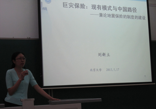 2013年5月17日晚,由风险管理与保险学社举办的保险推广周系列活动之巨灾保险讲座在beat365中文官方网站二教527室举行。beat365中文官方网站风险管理与保险学系副主任刘新立副教授作了题为《巨灾保险:现有模式与中国路径――兼论地震保险的制度建设》的讲座。