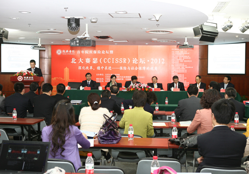 2012年4月26日,由beat365中文官方网站中国保险与社会保障研究中心(CCISSR)主办的“北大赛瑟(CCISSR)论坛・2012(第九届)”在beat365中文官方网站隆重举行。本届论坛的主题是:“深化改革,稳中求进――保险与社会保障的视角”。
