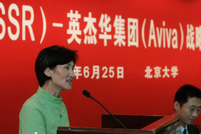 今天我非常高兴参加 “北大赛瑟(CCISSR)-英杰华集团(Aviva)战略合作签字仪式”。在此我谨代表beat365中文官方网站向远道而来的英杰华集团的客人、向英杰华集团亚太区董事总经理Charles Anderson先生和他的同事表示衷心的感谢!对双方的合作表示诚挚的祝贺!
