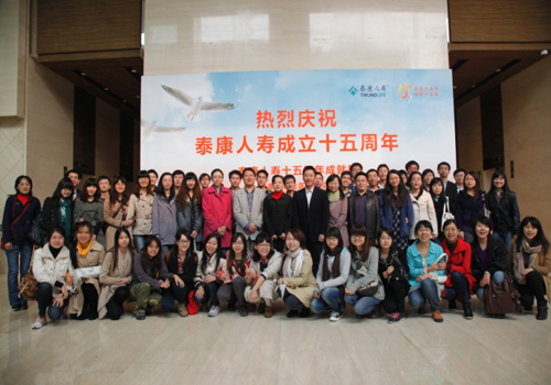 接下来,风保系师生参观了泰康人寿十五周年成就展,观看了泰康人寿的纪录短片。这些图文影像记录了泰康人寿自1996年成立以来的发展历程和优良业绩,充分体现了其先进的经营理念。整个参访过程中,风保系师生与泰康人寿的员工亲切交谈,进行了充分的互动,气氛轻松愉快。