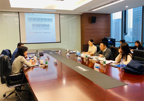 随后,课题组前往成都福寿康健康管理有限公司继续调研。与传统拥有床位的护理机构不同,福寿康公司以社区护理站为中心,辐射周围几公里内的社区,提供专业护理人员上门服务。汪奇诺经理介绍了成都福寿康健康管理有限公司的发展历程和现状,考虑到部分老人的个人状况和紧张的床位资源,护理站形式的照护服务机构大有可为。常群慧经理结合上海长护险试点的经验,进一步将社区护理站未来参与成都市长期照护保险的潜在优势总结为运行成本低、贴近老人家庭、服务技能专业等几个方面。此外,课题组成员就护理站的服务成本、机构入户服务需求大小、相关专业人员的培养机制等问题和护理机构团队进行了讨论。
