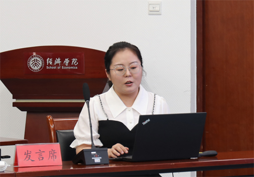 2016级博士生吴海青分享了论文《社会养老保险、隔代照料与农村劳动力流动》。她采用了2014年、2016年和2018年共三期的CFPS数据,通过面板Probit模型和模糊断点回归等方法,研究社会养老保险对农村劳动力流动的影响,以及隔代照料在其中发挥的传导机制。研究发现,父母领取社会养老保险会显著提高子女劳动流动的概率,这种正向影响对不同的劳动力流动类型来说有所不同。而家庭内部的儿童数量越多,社会养老保险对劳动力流动的影响就越大,这证明了隔代照料所发挥的作用。何小伟和周桦老师认为在劳动力流动决策中,家庭收入以及机会成本具有重要作用,建议在研究中控制家庭收入。朱铭来老师从技术角度对文章进行指导,并建议大家在研究中应当注意宏微观数据的有效衔接。