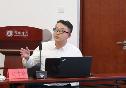 随后,2017级博士生丁宇刚分享了论文《气候风险、自然灾害与经济发展——基于中介效应模型的分析》。研究发现,气候风险会显著降低第一产业产出增速。从省内来看,气候风险对省内人均收入水平较低的地级市有显著负影响,而对省内人均收入水平较高的地级市的影响不显著。最后,他从气候风险、自然灾害和第一产业的关系角度,分析了影响机制。何小伟老师对文章选题和构思表示充分肯定,同时建议在变量选取时进一步细化指标,在研究中介效应时需要考虑各农业细分领域的差异性。