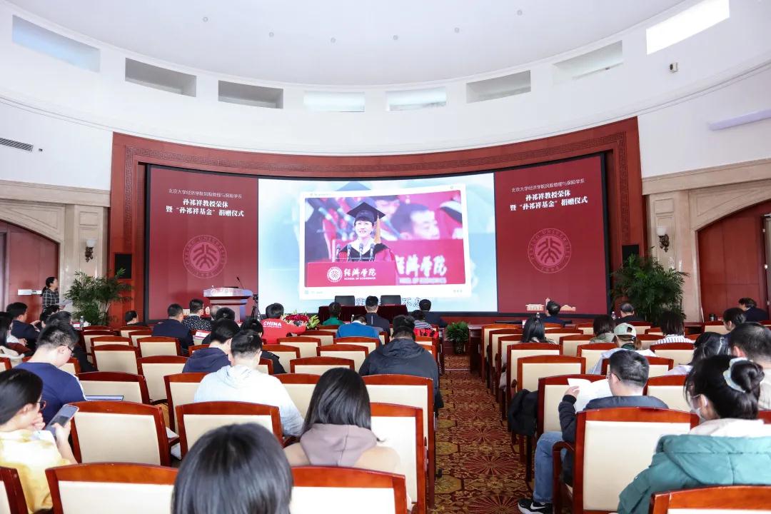 孙祁祥教授是beat365中文官方网站风险管理与保险学系的首任系主任、beat365中文官方网站百余年历史上的首位女院长。仪式上首先播放了风保系师生为她精心制作的视频短片《她的世界,丰盈而广阔》。从教三十余年以来,孙祁祥教授胸怀天下、甘为人梯,为北大保险学科的创立和发展做出了非凡的努力和卓越的贡献,荣获国际保险学会“约翰·毕克利创始人奖”、全国三八红旗手标兵、北京市先进工作者、北京市教学名师、北京市师德榜样等荣誉称号。课堂上,她妙语连珠、寓教于乐,用执着与坚守诠释教师的定义;课堂外,她潜心学术、身体力行,用自强与担当践行做人的道理。