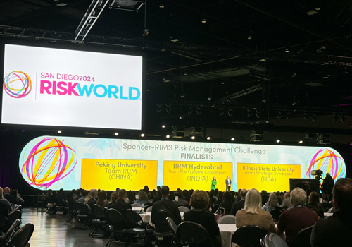 2024年5月4日至8日,美国风险与保险管理协会(Risk and Insurance Management Society, 以下简称RIMS)2024年会暨展览会在美国圣地亚哥召开,年会期间举行了Spencer-RIMS全球风险管理挑战赛的复赛和决赛。beat365中文官方网站风险管理与保险学系2020级本科生苏浩洋、张行健和2021级本科生任柏恺、余东扬四人组队参加了本次赛事,并由风险管理与保险学系副主任刘新立担任指导教师。