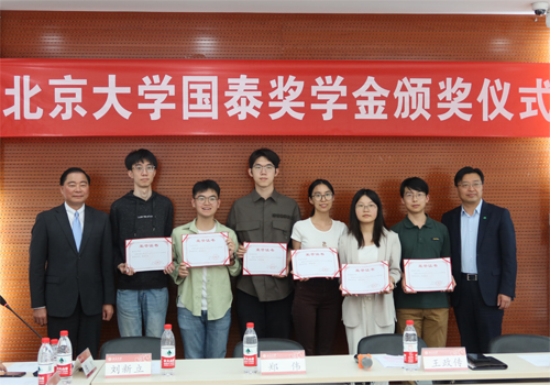 接下来,陆家嘴国泰人寿公关行政部总经理丁夏宣读了获奖名单,获奖同学包括本科生梁晨曦、任柏恺、张行健、丁玟欣,硕士生居江山和博士生张浩田。国泰人寿北京代表处首席代表王政传先生和陆家嘴国泰人寿董事会秘书郑洲先生作为嘉宾颁奖。全体获奖同学与颁奖嘉宾合影留念。