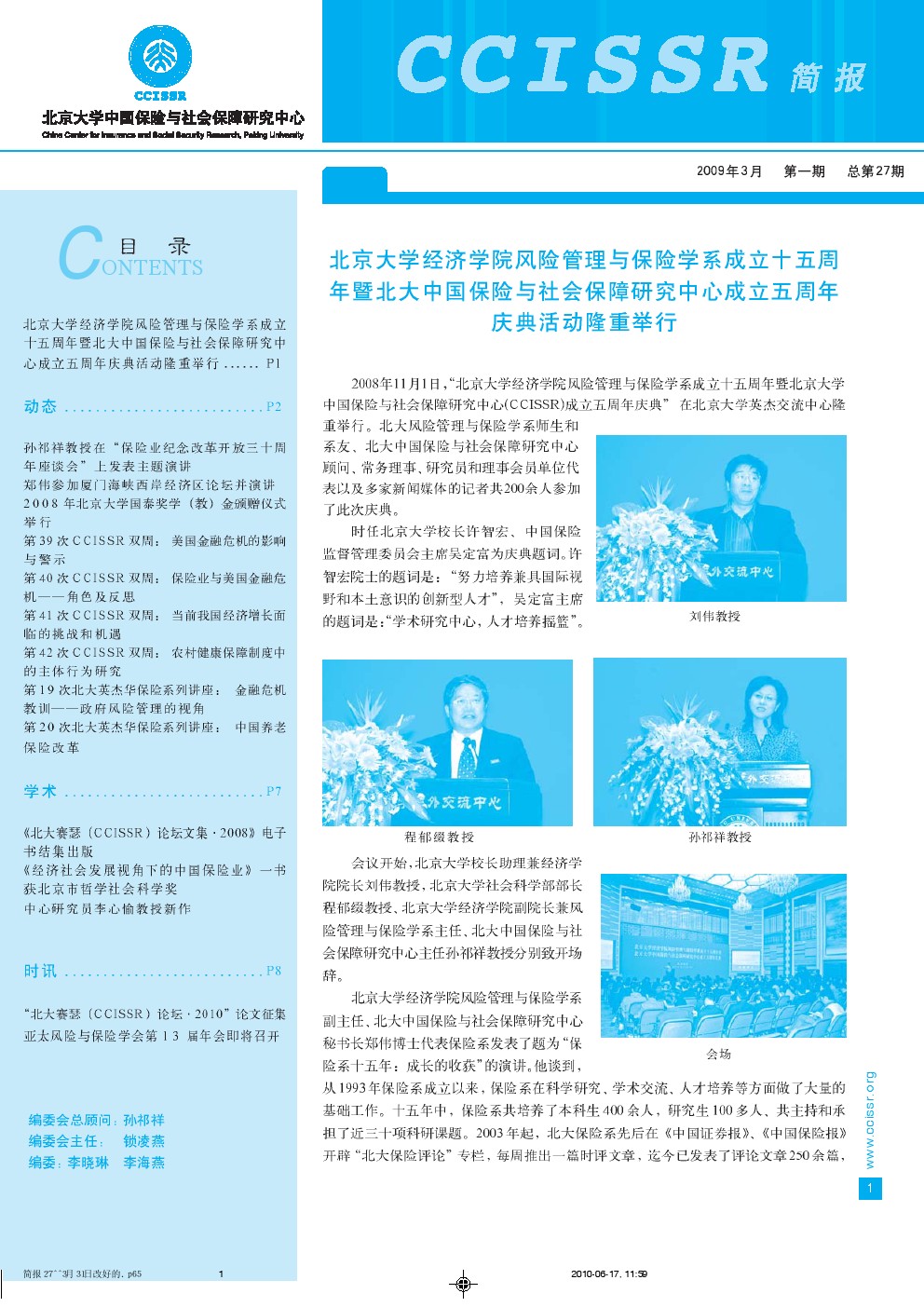 beat365中文官方网站保险与社会保障研究中心成立五周年............P1