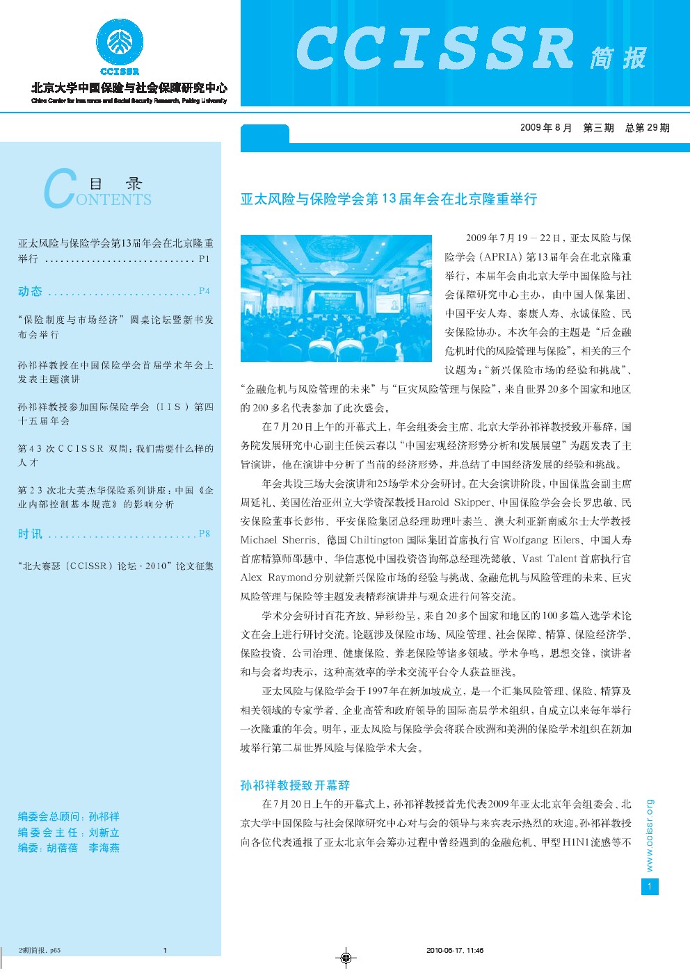 亚太风险与保险学会第13届年会在北京隆重举行....P1、P2、P3