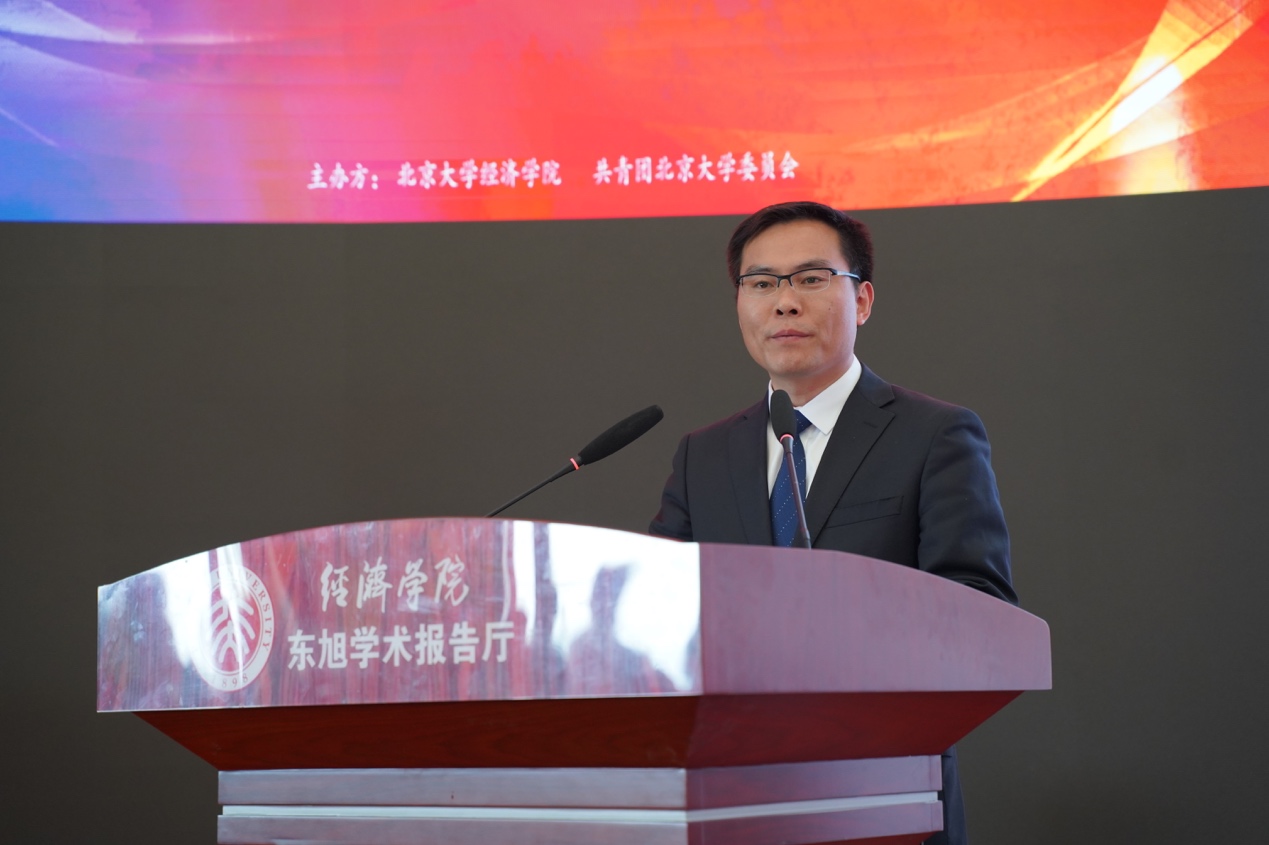 Subsequently, Wang Shengbo, the chairman of the National Association of Students and 2016 Ph.D. candidate of SEPKU, made a speech as the student representative. He mentioned that this forum offered a great chance to deeply understand the earnest message entrusted by the Chairman and leading youth to shoulder contemporary responsibility. He later shared four attitudes youth economists should have to make one’s own contributions to our country’s construction with wisdom and energy.