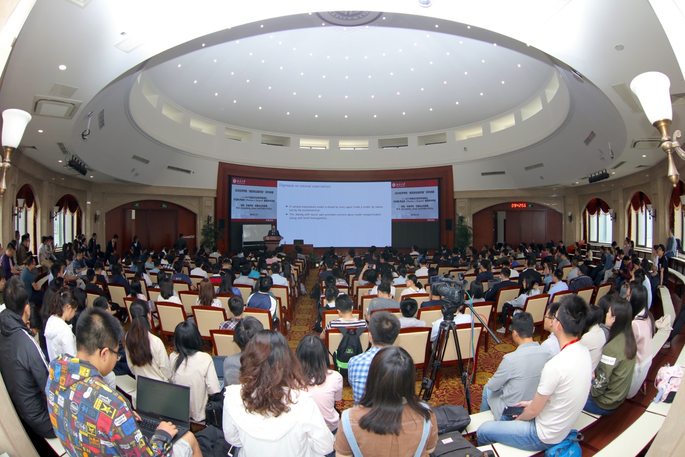 Then, Professor Sargent gave a lecture entitled “Risk, Uncertainty, Value, and Public Policy” at the Lecture Hall of SEPKU at 9:30. The lecture was chaired by Professor Qin Xuezheng, Deputy Dean of School of Economics.