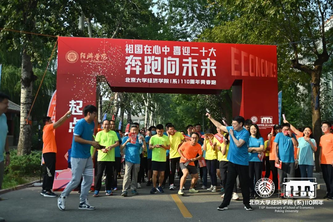 On the afternoon of September 30, the School of Economics at Peking University held the Run-For-Youth for its 110th Anniversary. Dong Zhiyong, Dean of School of Economics, Zhang Hui and Suo Lingyan, Deputy Dean, Song Fangxiu and Wang Yiran, Deputy Secretaries of the School Council, Zhao Liuyan, Wu Zenan, Zhou Chao, Assistants to Dean and more than 200 teachers and students of the college actively participated in the activity.