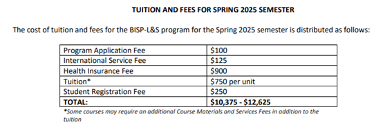 项目费用请参考: Financial Information Spring 2025