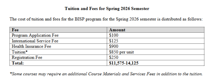 项目费用请参考: Financial Information Spring 2026
