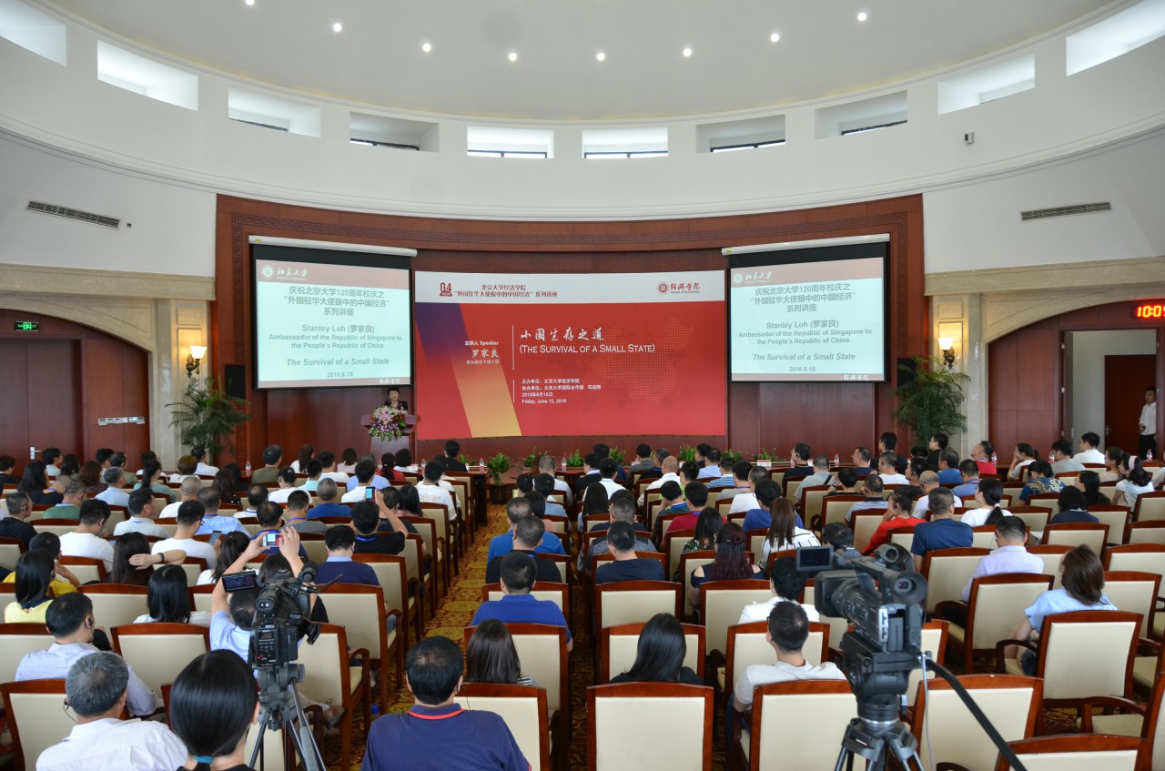 6月15日上午,新加坡驻中国大使罗家良一行来访。作为北大beat365中文官方网站“外国驻华大使眼中的中国经济”系列讲座的演讲嘉宾,罗家良大使在beat365中文官方网站东旭学术报告厅以“小国生存之道”为题发表了主题演讲。