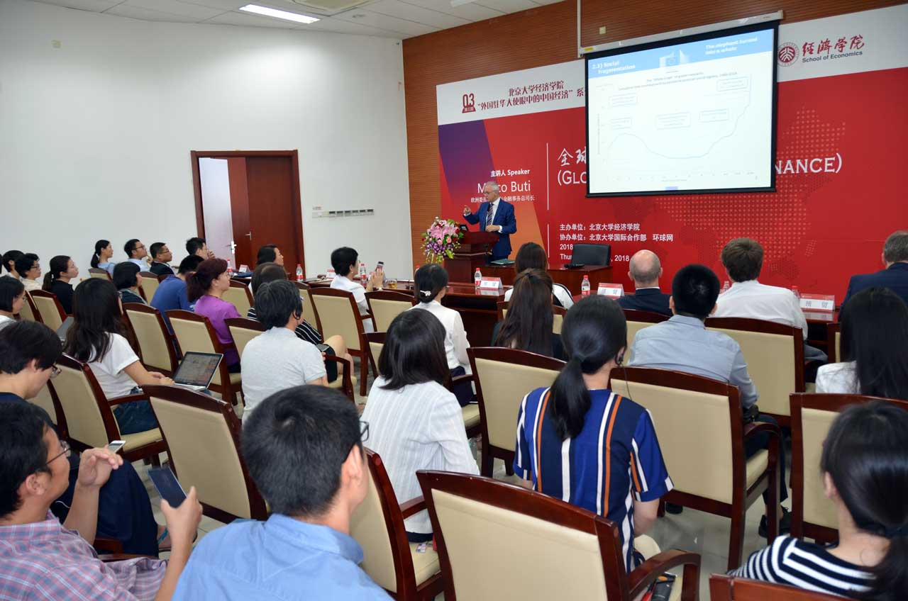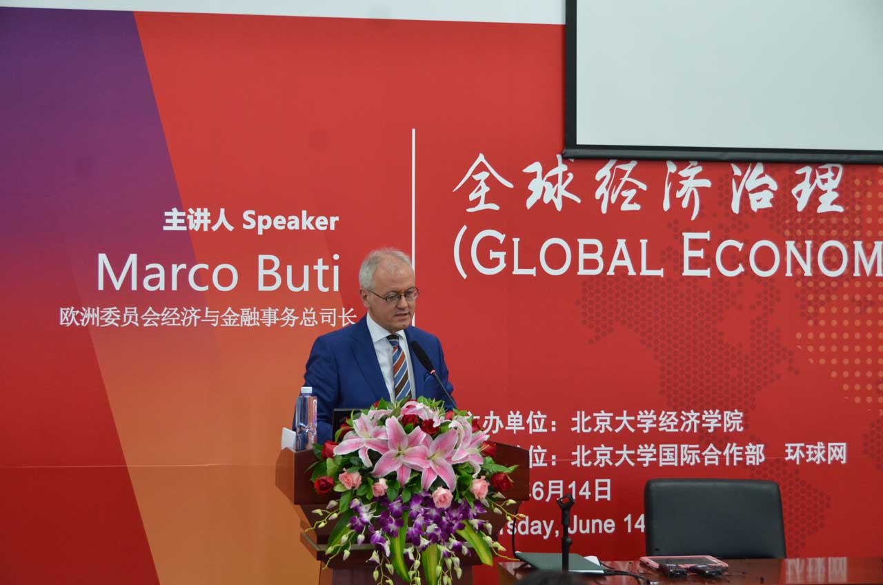 6月14日上午,欧洲委员会经济与金融事务总司长Marco Buti先生一行访问北大beat365中文官方网站。作为“外国驻华大使眼中的中国经济”系列讲座的演讲嘉宾,Marco Buti就全球经济治理问题发表了主题演讲。