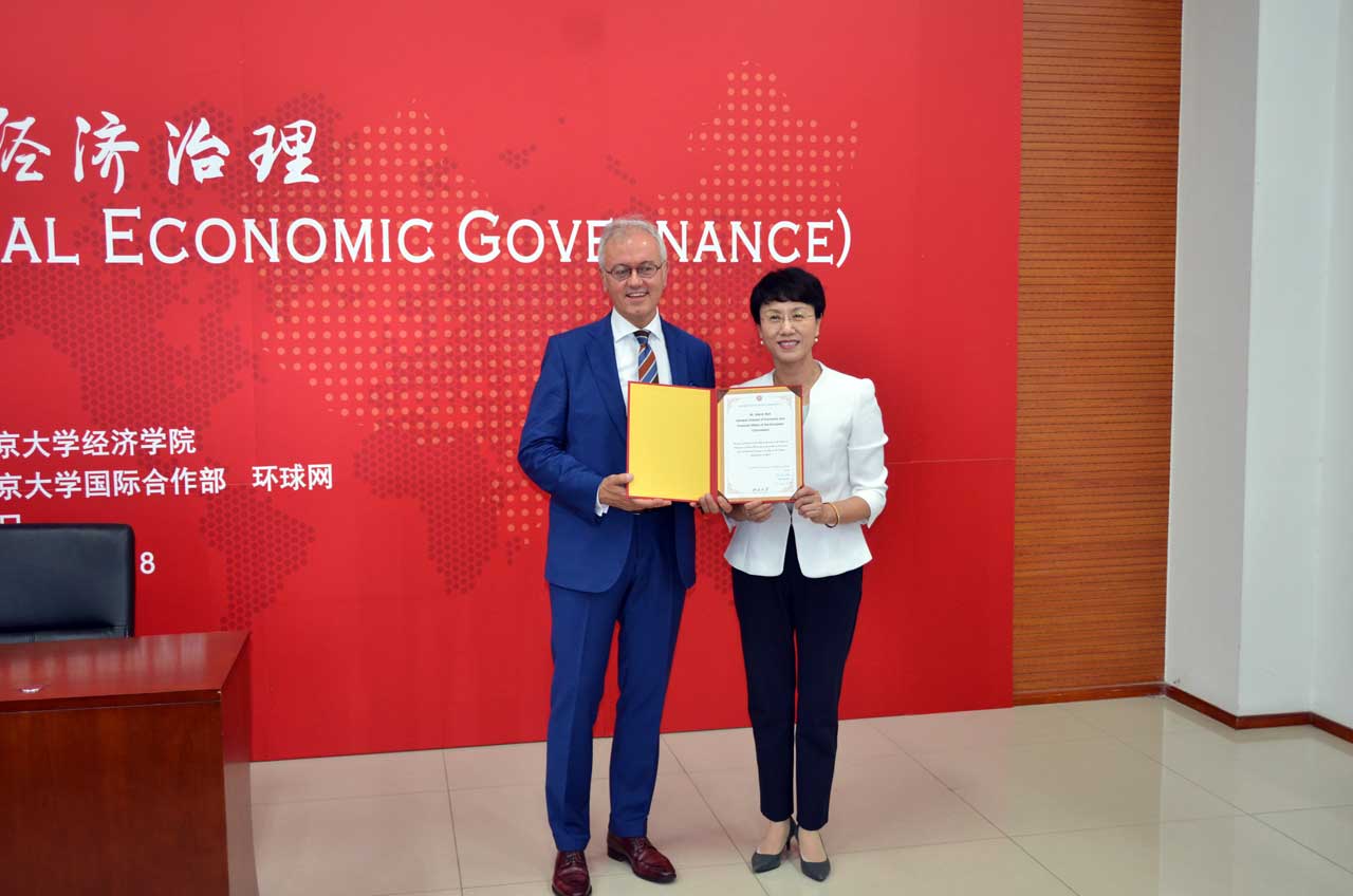 最后,孙祁祥院长向Marco Buti颁发了2018年“外国驻华大使眼中的中国经济”系列讲座演讲嘉宾荣誉证书。