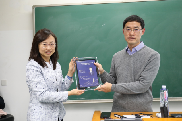 锁凌燕教授向邱海旭先生赠送纪念品