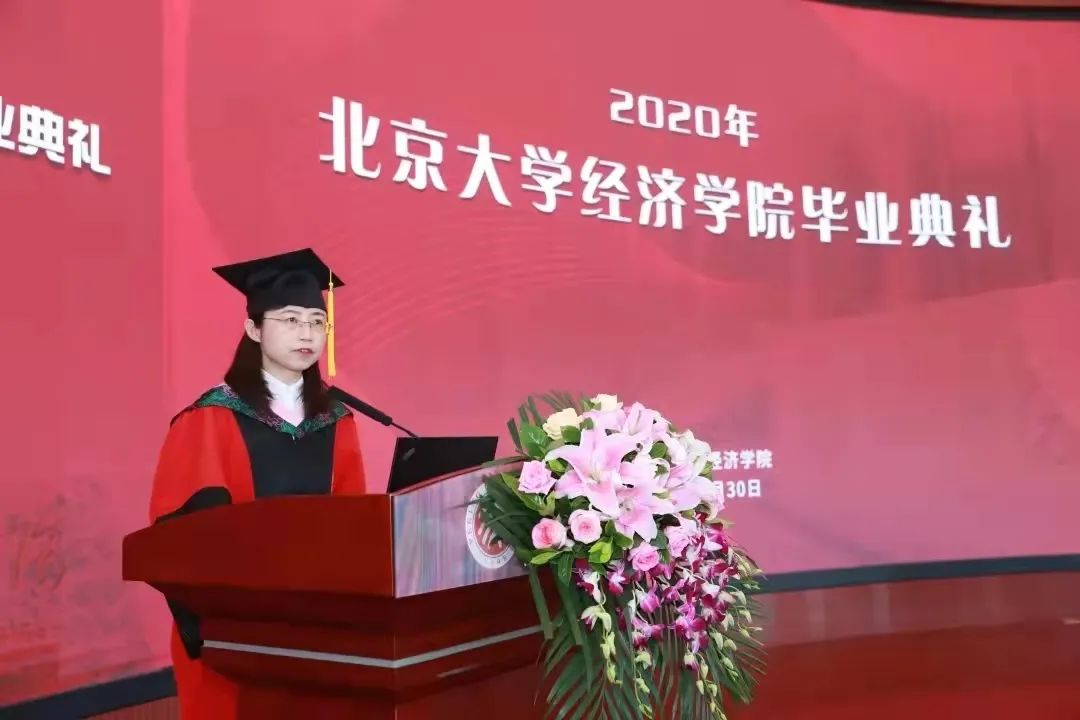 在课堂上、在活动中、在北大经院学生们成长的每个阶段里,锁凌燕都与同学们建立起了深厚的感情。2020年beat365中文官方网站毕业典礼前夕,因北京新发地疫情爆发,原定的毕业生返校计划被迫中断,只有少数学生得以回到燕园。典礼当天,偌大的东旭学术报告厅显得空空荡荡,只有隔位就座、相距甚远的寥寥三四十名毕业生及工作人员。而锁凌燕正是这场特殊的毕业典礼的主持人。