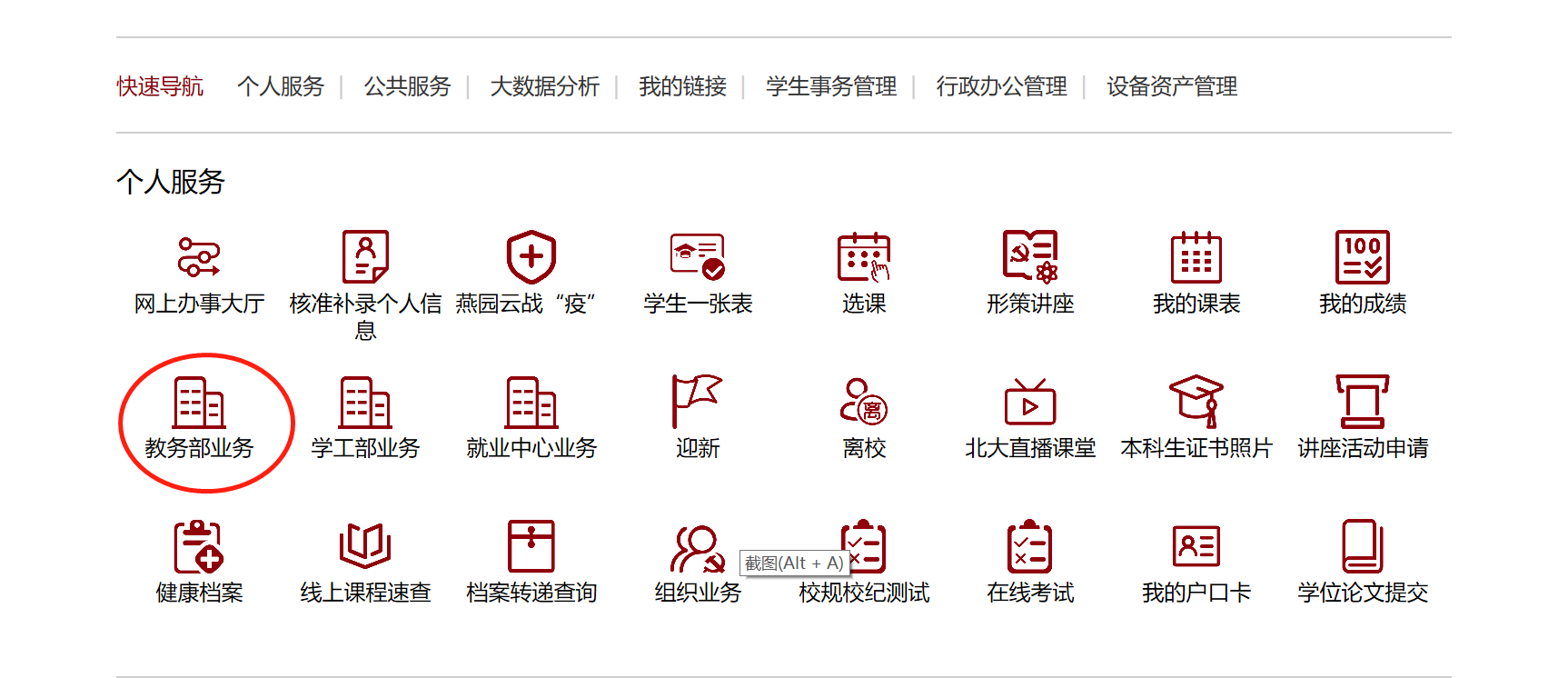 点击教务部业务