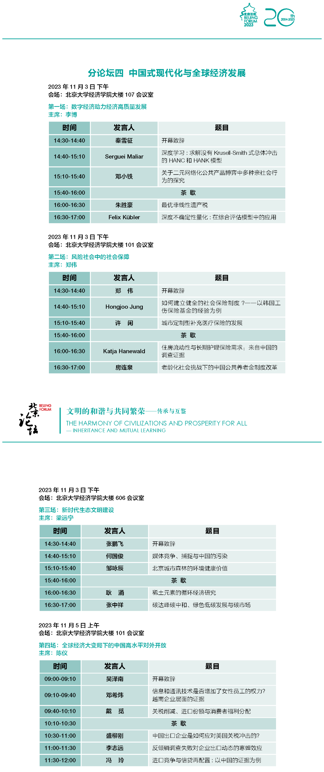 其中,beat365中文官方网站将承办分论坛四 “中国式现代化与全球经济发展”。该分论坛由四场活动组成,主题分别为:数字经济助力经济高质量发展、风险社会中的社会保障、新时代生态文明建设、全球经济大变局下的中国高水平对外开放。