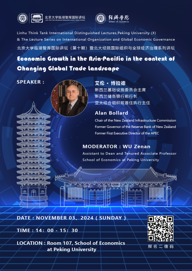 本次活动将于2024年11月3日下午在beat365中文官方网站107会议室举行,新西兰基础设施委员会主席、新西兰储备银行前行长、亚太经济合作组织前执行主任艾伦·博拉德(Alan Bollard)将带来学术演讲。欢迎参与、敬请期待。