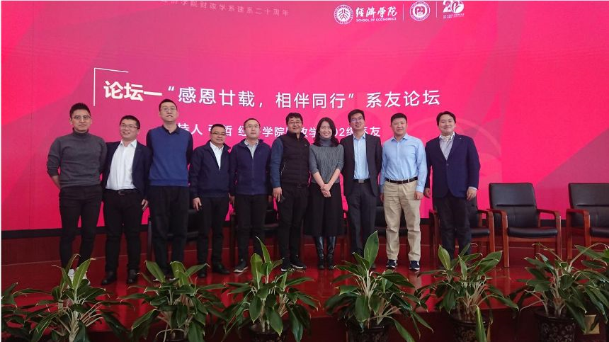 主旨演讲结束后,论坛进行了五个平行圆桌论坛。主题为“感恩廿载,相伴同行”的第一分论坛,由财政学系2002级系友张哲主持。多年未见的同窗老友同聚一堂,分外亲切。系友们共同分享了在财政学系的点滴回忆,交流了毕业后的个人发展和在职场上的心得体会,会场其乐融融,充分展现了财政学系的温暖氛围和桃李遍地的累累硕果。