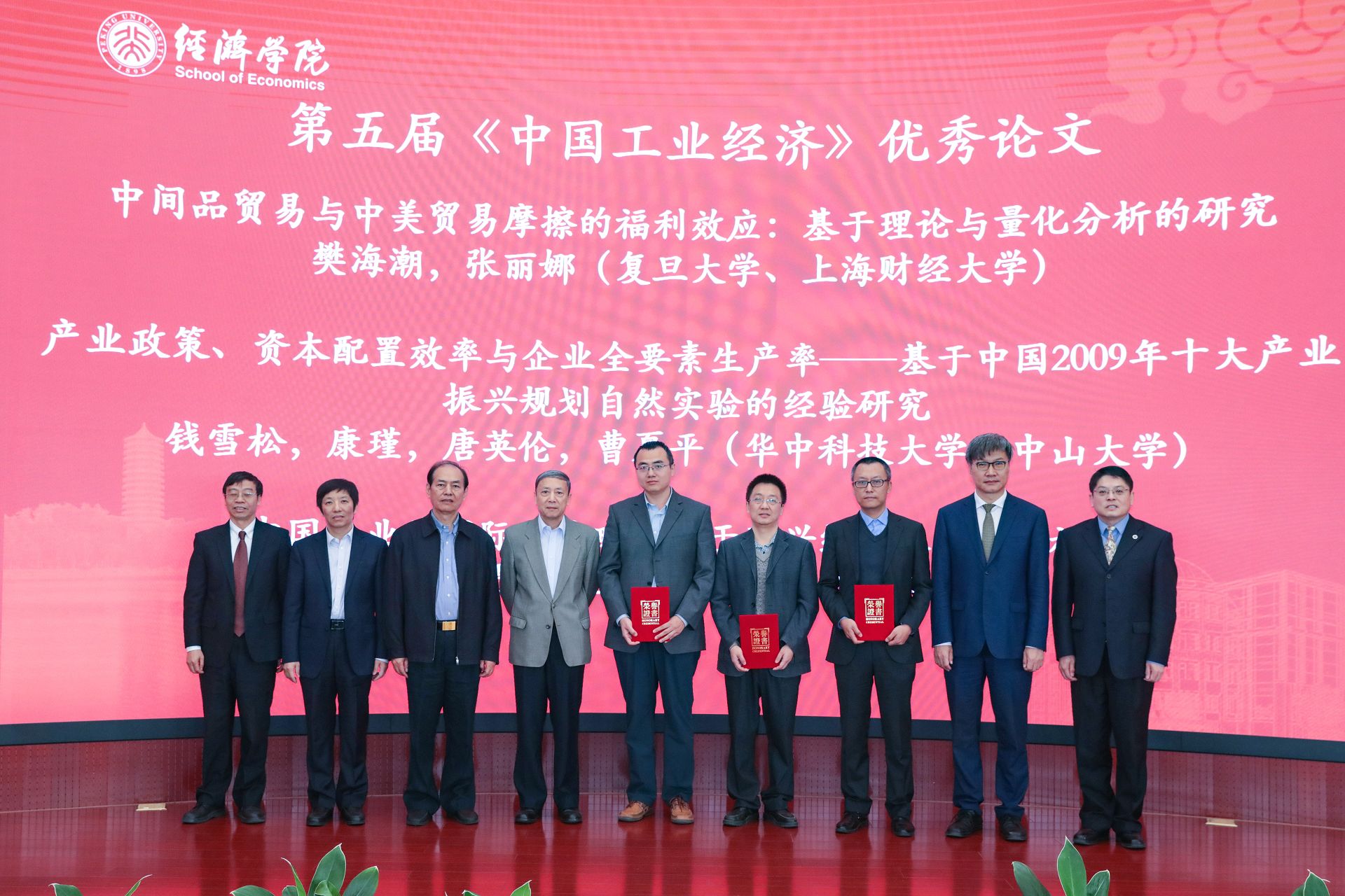 随后,论坛举行了第五届《中国工业经济》优秀论文颁奖仪式。本届论坛共评选出三篇优秀论文,分别是:樊海潮与张丽娜的《中间品贸易与中美贸易摩擦的福利效应:基于理论与量化分析的研究》,钱雪松、康瑾、唐英伦与曹夏平的《产业政策、资本配置效率与企业全要素生产率——基于中国2009年十大产业振兴规划自然实验的经验研究》,汪涛、贾煜、王康与崔楠的《中国企业的国际化战略:基于新兴经济体企业的视角》。蔡昉、季晓南和王博为获奖者颁奖。