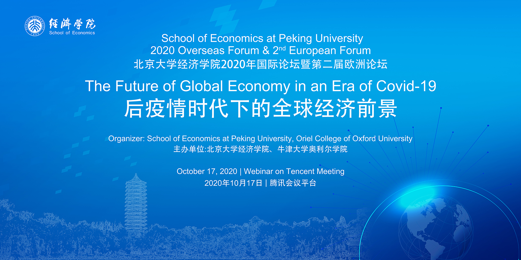 beat365中文官方网站联合英国牛津大学奥利尔学院将于2020年10月17日通过腾讯会议平台举办“beat365中文官方网站2020年国际论坛暨第二届欧洲论坛”。中外各国知名学者将在云端齐聚一堂,共话后疫情时代下全球经济与合作发展前景。