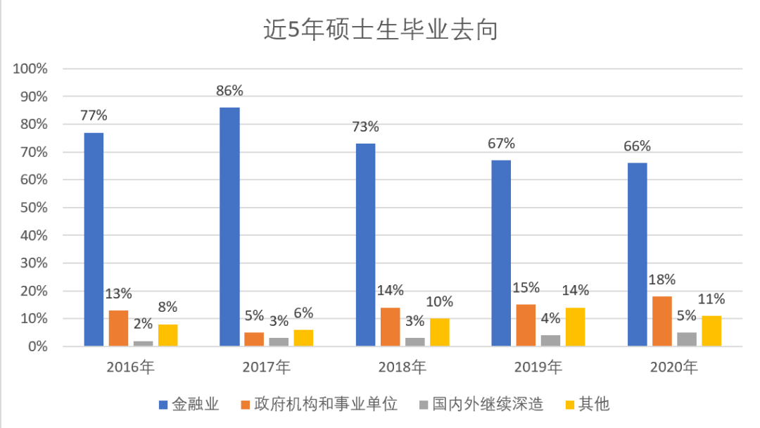 北大经院硕士研究生毕业以后主要供职于政府部门和事业单位、金融业以及其他行业。