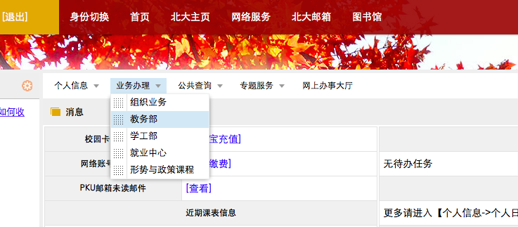 点击业务办理,选择教务部
