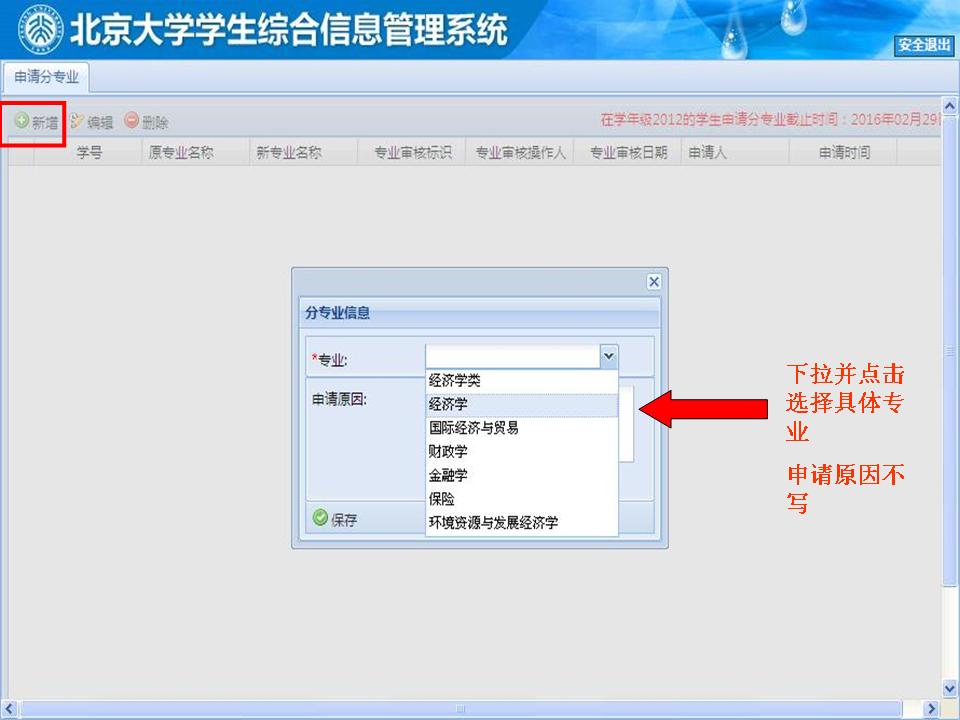 登陆自己的校内门户——业务办理——教务部——申请分专业——新增——选择专业分流结果——保存